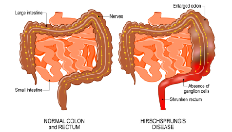 Hirschsprung disease or congenital megacolon disease is a digestive condition in newborn babies. In some babies, the ganglion cells do not migrate to the rectum. The absence of these cells obstructs the large bowel. Newborn babies suffer from digestive and excretory disorders because of this condition. In some cases, it occurs due to genetic disorders, while in others it can occur due to diet taken by the mother or any illness she had during the pregnancy